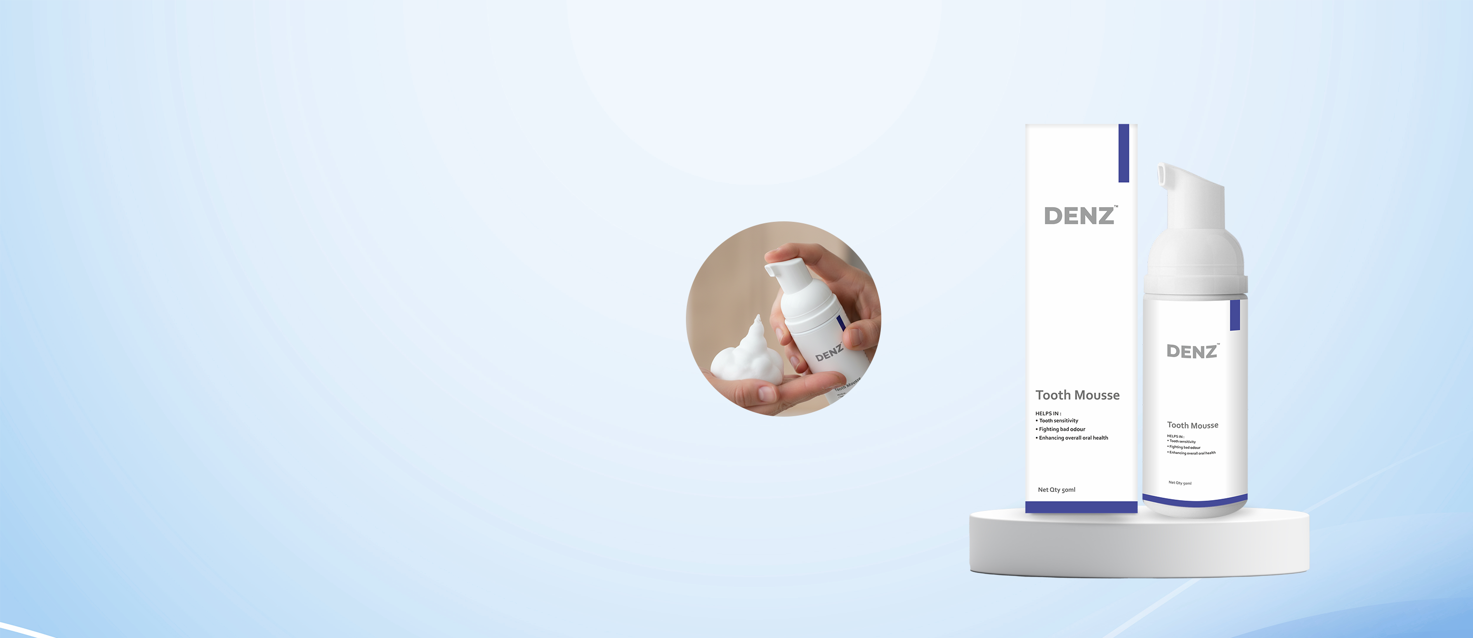 DENZ Tooth Mousse is an oral care foam that helps reduce tooth sensitivity, fights bad odour, and keeps your breath fresh all day. Use it as a brushing aid or a natural mouthwash for complete oral hygiene